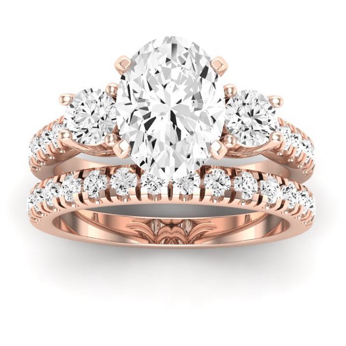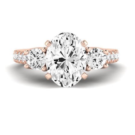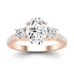 Three-Stone Design: The three-stone arrangement not only symbolizes your journey together but also adds significant sparkle and visual interest to the ring. The center gem takes prominence, while the two side stones complement its beauty and amplify its brilliance.