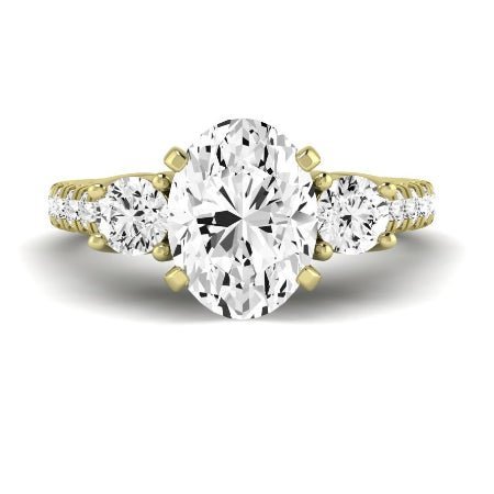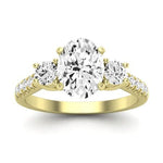 Celebrate your forever love with this breathtaking classic three-stone accented engagement ring. A timeless design reimagined, this ring beautifully balances tradition with a touch of modern elegance. The meticulously crafted details and exceptional craftsmanship make this a true heirloom in the making.