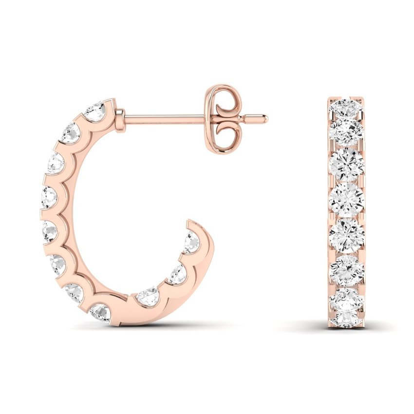 A Set Of Huggie Earrings Embedded With Lots Of Round Shape Accent Stones. Brilliant And Flashing, These Row Of Round Stones Perfectly Lined Are Surely Eyecatching.