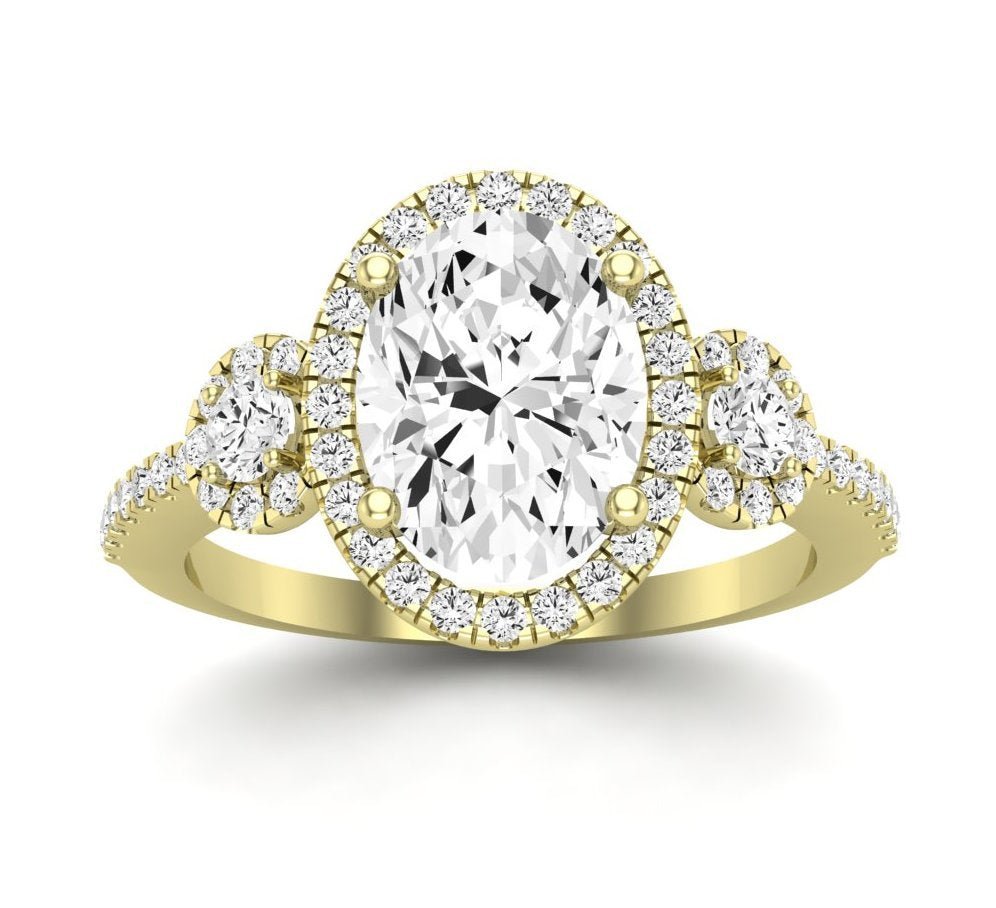This Three Stone Halo Engagement Ring is a breathtaking testament to your love, designed to be cherished for a lifetime.