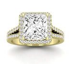 Capture the essence of timeless romance with this breathtaking classic halo engagement ring. A masterpiece of design, this ring showcases your chosen gemstone in a radiant embrace of light, further elevated by a sophisticated split shank.