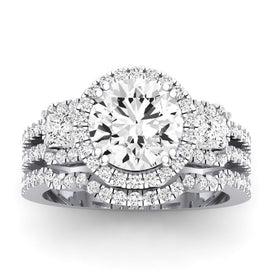 A Classic Three Stone Mounting Moissanite Ring Features Two Quality Round Moissanites On The Sides. This Classic Three Stone Engagement Ring Is One Of Our Favorite In The Collection. It Is Available In Various Size, Carat Weight And Gold Color.