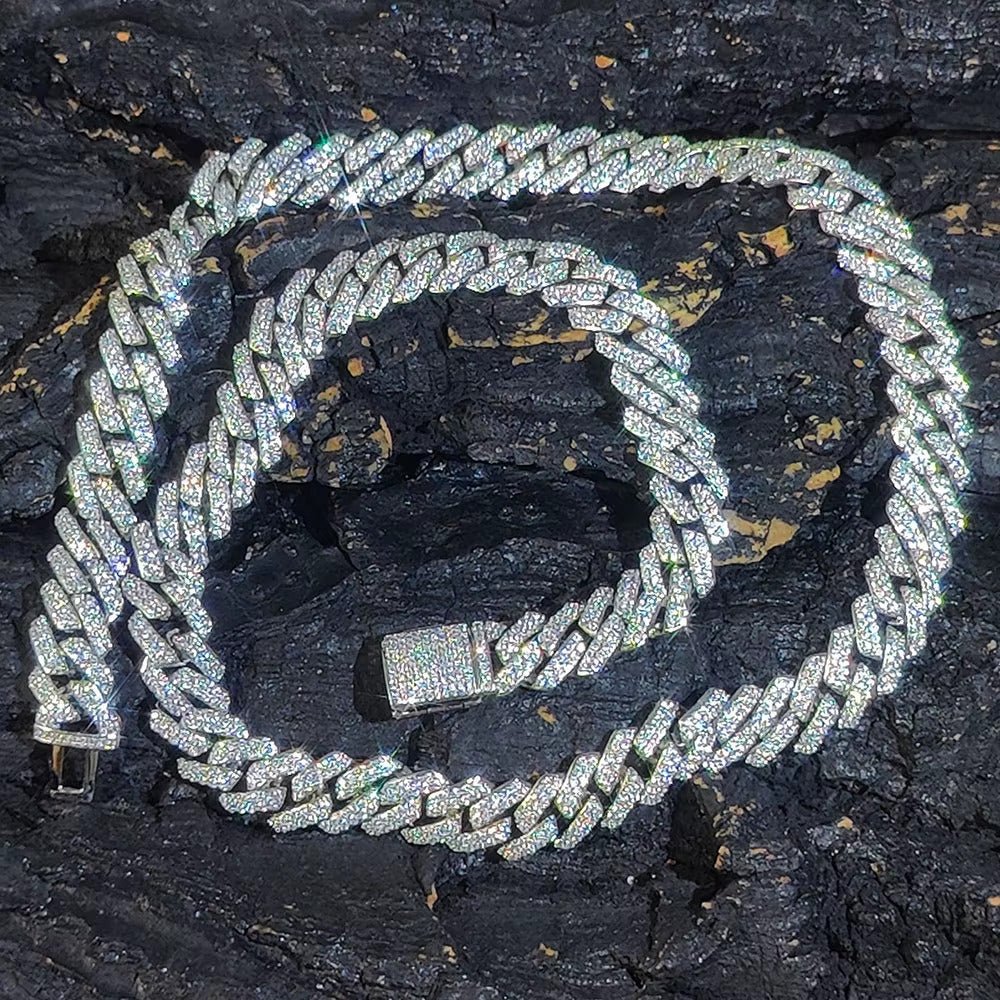 18ct TCW Iced Out Moissanite Cuban Link Chain Necklace