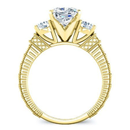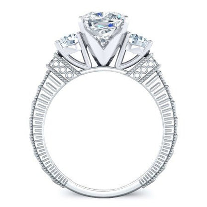 Enjoy The Perfect Blend Of Vintage And Class. This Engagement Ring Is Filled With Hand Engraved Details That You Will Surely Want To Wear. It Is A Three-stone Style Engagement Ring. What Is Not To Love?