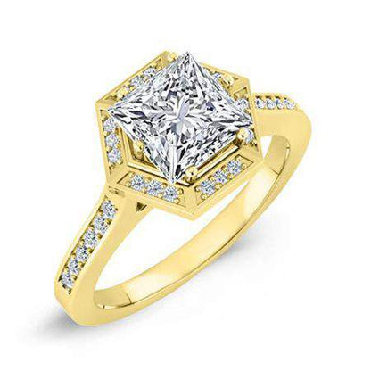 A Hexagonal Halo Ring Design So Unique She Will For Sure Say Yes To! Get This Halo Ring With Round Accent Stones All Around The Top And The Shank. Order The Ring Size You Need And The Metal Type, Center Stone Shape You Want.