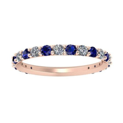 This Gorgeous Ring Exposes An Alternating Sapphire And White Round Diamond. This Is Such A Lovely Design To Compliment Your Style. Reward Yourself With Something Pretty.