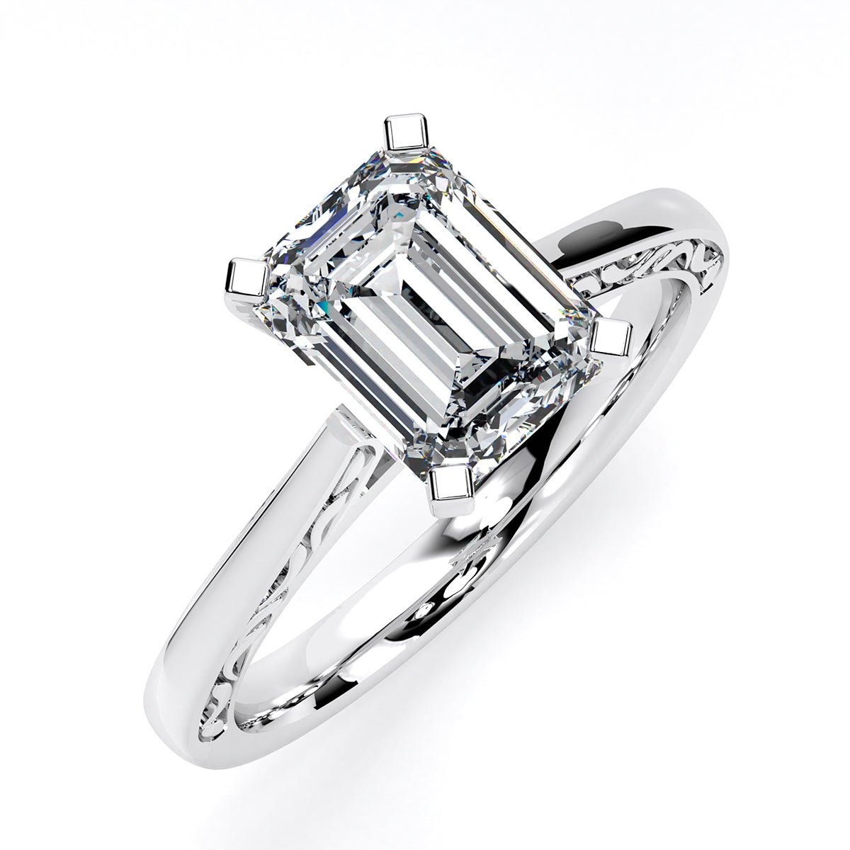 Petite Solitaire Engagement Ring with Paisley Swirl Shank