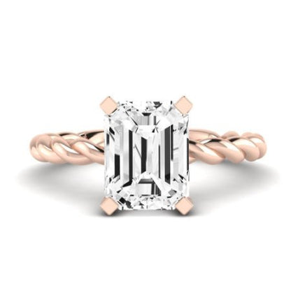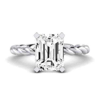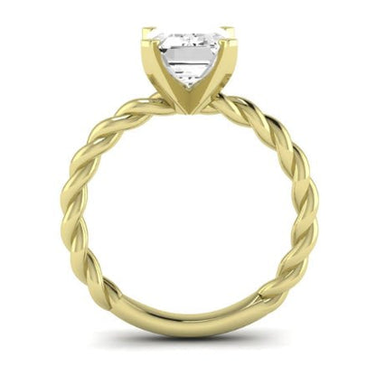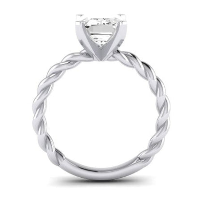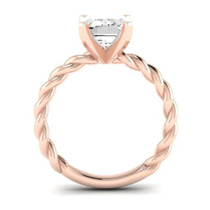 • The petite rope twist shank adds a touch of unique texture and visual interest to this otherwise classic design. The delicate rope-like pattern gracefully encircles the finger, creating a subtle yet captivating detail. The petite style of the shank ensures the focus remains on the center gem, while still offering a distinctive and refined look. This intricate detail symbolizes the intertwining of two lives, creating a beautiful and meaningful representation of your commitment.