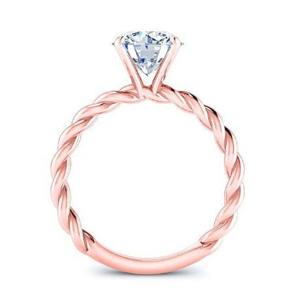 • The petite rope twist shank adds a touch of unique texture and visual interest to this otherwise classic design. The delicate rope-like pattern gracefully encircles the finger, creating a subtle yet captivating detail. The petite style of the shank ensures the focus remains on the center gem, while still offering a distinctive and refined look. This intricate detail symbolizes the intertwining of two lives, creating a beautiful and meaningful representation of your commitment.