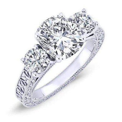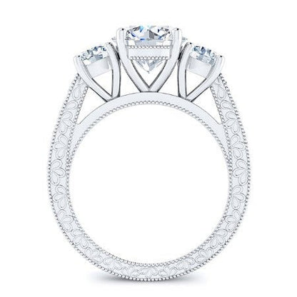 Capture her heart with this exquisite vintage-inspired three-stone engagement ring, a piece that whispers of romance and enduring love. This ring isn't just a symbol of your commitment; it's a work of art, meticulously crafted to become a cherished heirloom. Its classic design, imbued with delicate details, will leave her breathless.