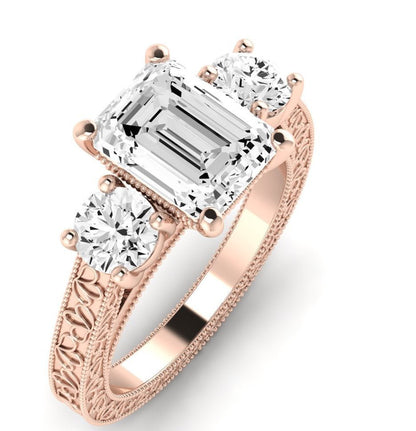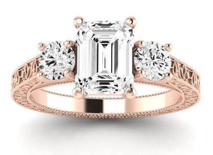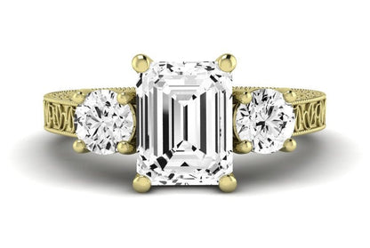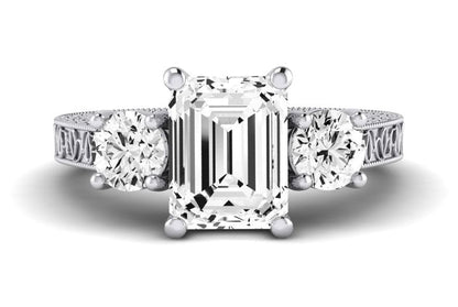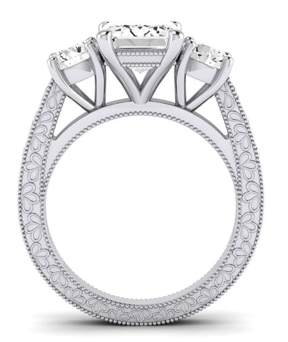 Capture her heart with this exquisite vintage-inspired three-stone engagement ring, a piece that whispers of romance and enduring love. This ring isn't just a symbol of your commitment; it's a work of art, meticulously crafted to become a cherished heirloom. Its classic design, imbued with delicate details, will leave her breathless.