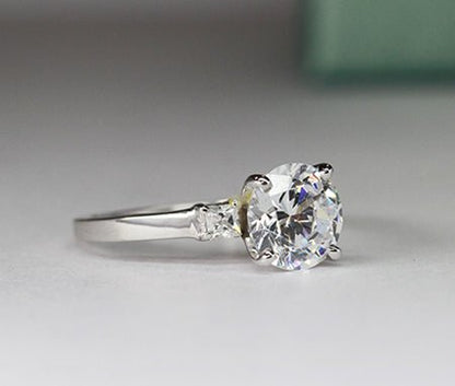 An Elegant Three Stone Engagement Ring With Round Center Diamond And Princess Cut Diamonds On The Side. This Ring Is The Best Choice As An Engagement Ring That Will Make Her Cry Out Of Joy. Handcrafted And Custom-made To Order Make This Ring A Must Have.