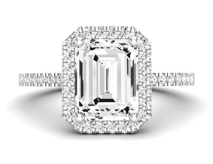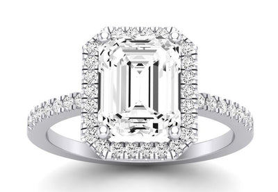 This timeless Classic Halo engagement ring is a masterpiece of exquisite craftsmanship. A dazzling center gem is gracefully embraced by a halo of shimmering round stones, creating a breathtaking display of brilliance. The delicate pave setting accentuates the sparkle of each gem, resulting in a truly captivating and unforgettable piece.