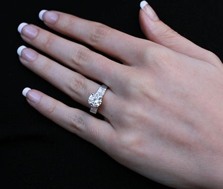 The Bar Set Baguette And Princess Diamond Side Stones Give This Engagement Ring The Thickness That You Will Appreciate. With This Classic Bar Set Ring Design, The Diamond Is Dazzling More Than Ever. You Will Love This Engagement Ring At The First Sight.