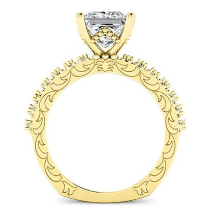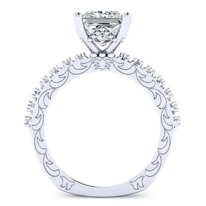 This Ring Engraved With Paisley Swirl Design Along The Side Of The Shank Is Truly Mesmerizing. This Ring Contains Small Accent Stones With Milgrain Design Along The Edges Of The Shank.