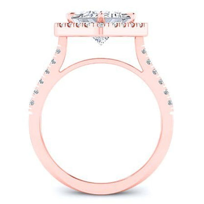This Modern Kite Halo Engagement Ring is a perfect symbol of your modern love story, a piece that will dazzle and delight for a lifetime.