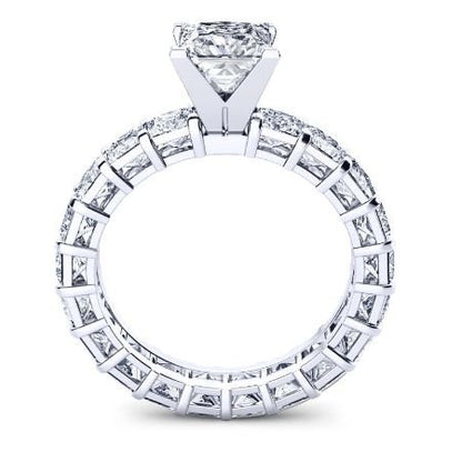This Eternity Princess Cut Engagement Ring Has A Sparkling Princess Cut Moissanites Encircle The Band. It Suggests A Love That Never Ends. Crafted In Quality 14k, 18k Gold And Platinum, The Band Has A Total Moissanite Weight Of 2.5 Carat.