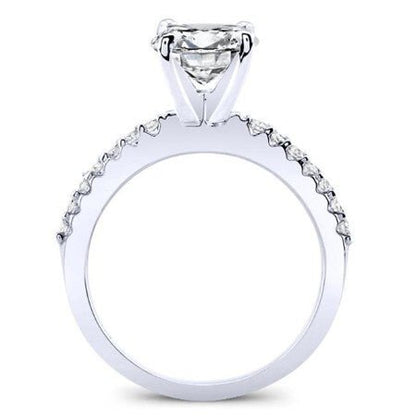 The delicate prong setting allows the gem to dance with light, maximizing their brilliance and creating a breathtaking display of sparkle. This sophisticated design ensures your engagement ring stands out with understated elegance.