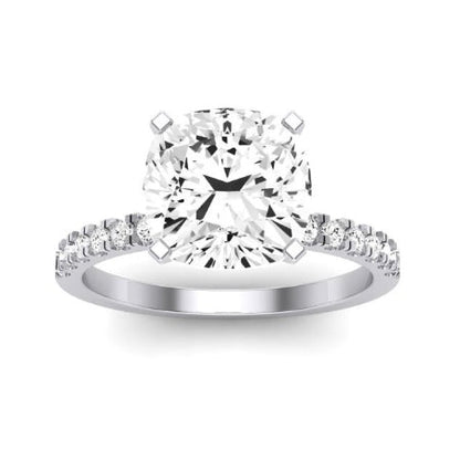 This Classic Petite Cushion Moissanite Ring With French Pave Side Stones Is Beautifully Crafted And Custom-made For You. The High-quality Side Stones On A Petite Band Accentuate The Center Moissanite More Than Ever. Truly An Astonishing Workmanship, Let This Moissanite Ring Sparkle Everywhere You Go.
