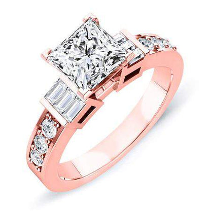Simply Elegant, This Three-stone Engagement Ring Features A Gorgeous Princess-cut Diamond In The Center. This Unique Three Stone Engagement Ring Has An Added Brilliance From The Diamonds That Are Channel-set Down On Both Sides Of The Ring.