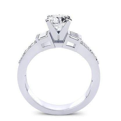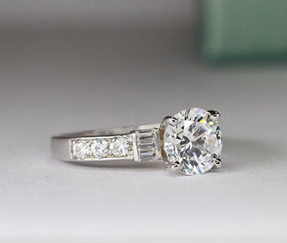 Either For A Proposal Or A Wedding Anniversary, This Three-stone Baguette Cut Moissanite Ring Is The Perfect Choice. This Engagement Ring Features A Channel Set Side Stones And Is Custom-made To Order Just For You.