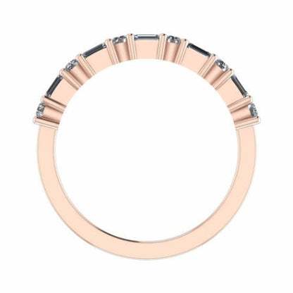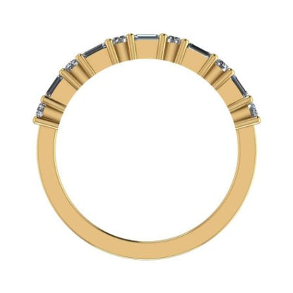 Perfect Combination. This Design Truly Shows A Perfect Blend Of Alternating Baguette And Round Stones That Are Lined On The Top Of This High Polished Wedding Ring. Fall In Love Again And Put On This Design.