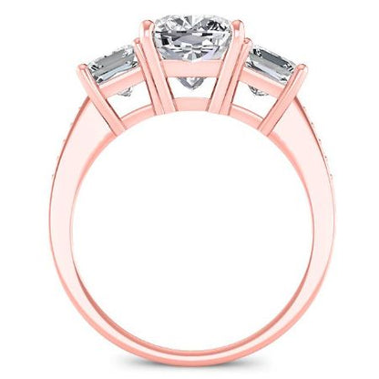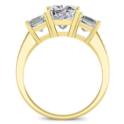 A Three Stone Ring With Additional Punch. This Perfectly Crafted Engagement Ring Is A Luxurious Piece Showing A Combination Of Princess And Round Shape Side Stones. The Two Princess Side Stone Nestle Brilliantly In Both Sides Of The Center Stone Of Your Choice. Complete Your Day By Wearing This Lovely Ring.