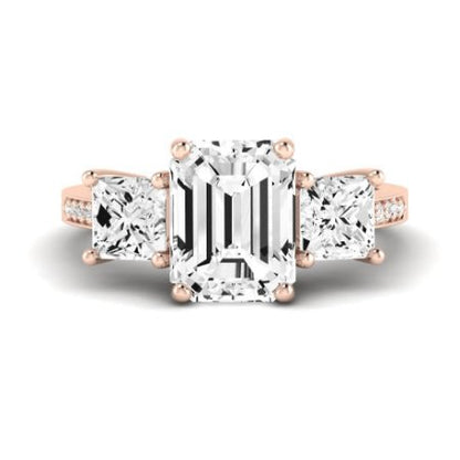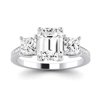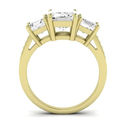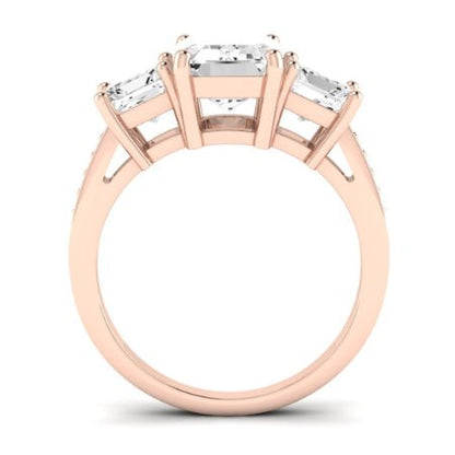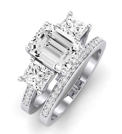 A Three Stone Ring With Additional Punch. This Perfectly Crafted Bridal Set Is A Luxurious Piece Showing A Combination Of Princess And Round Shape Side Stones. The Two Princess Side Stone Nestle Brilliantly In Both Sides Of The Center Stone Of Your Choice. Complete Your Day By Wearing This Lovely Ring.