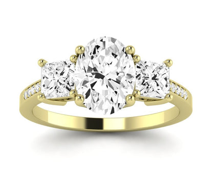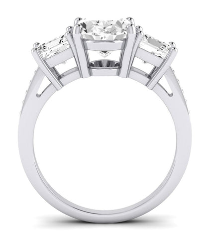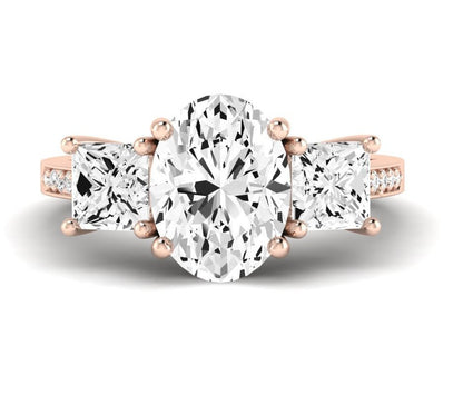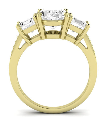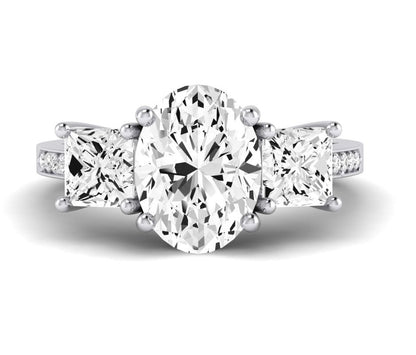 A Three Stone Ring With Additional Punch. This Perfectly Crafted Engagement Ring Is A Luxurious Piece Showing A Combination Of Princess And Round Shape Side Stones. The Two Princess Side Stone Nestle Brilliantly In Both Sides Of The Center Stone Of Your Choice. Complete Your Day By Wearing This Lovely Ring.