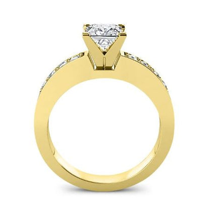 This Tapered Four Prong Engagement Ring Showcase A Vivid Diamond Of Your Preference At The Hub Of The Ring Which Further Beautified By The Channel Set Princess Cut Diamonds On Either Side Of The Ring. This Ring Is Just Simply Classy And Elegant.