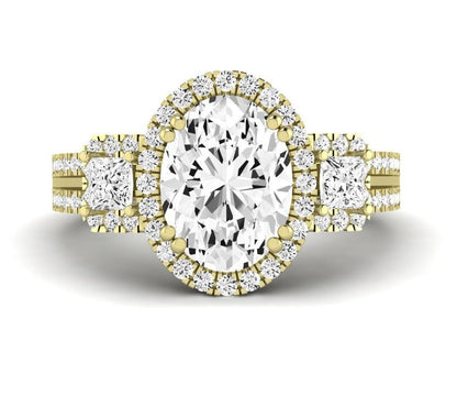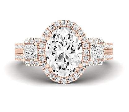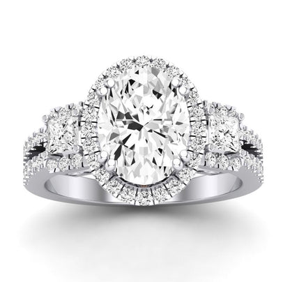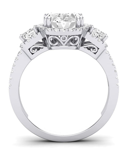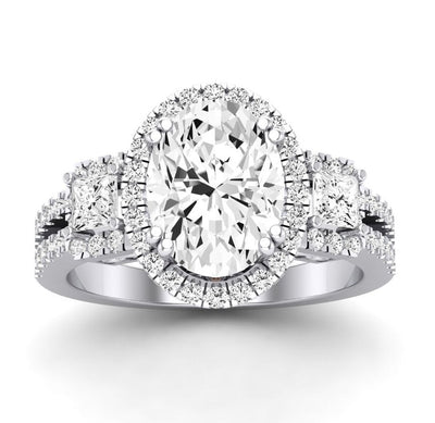 This exquisite vintage-inspired three-stone ring is a timeless symbol of love and commitment. Crafted with meticulous attention to detail, it exudes elegance and sophistication. The ring features a stunning trio of brilliant-cut gems, with a larger center stone flanked by two smaller stones, creating a captivating display of sparkle. The pave setting adds a touch of glamour, with tiny gems delicately encircling the center stone and adorning the band. The unique double shank design enhances the ring's allure, creating a sense of depth and dimension. This ring is a perfect choice for those who appreciate classic beauty with a touch of vintage charm.