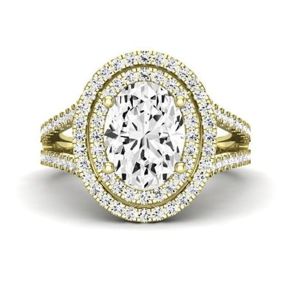 A Perfect Double Halo Ring With Micro Pave Setting Is The Best Choice For Your Sophisticated Taste. Find This Ring Sitting On Your Finger With Brilliance And Fire. Enjoy Every Moment Wearing This Beautiful Engagement Ring With A Split Shank Band.