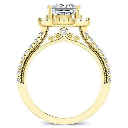 This exquisite modern halo engagement ring is a true masterpiece of contemporary design. A dazzling center stone is gracefully embraced by a halo of sparkling round gems, creating a captivating aura of brilliance.