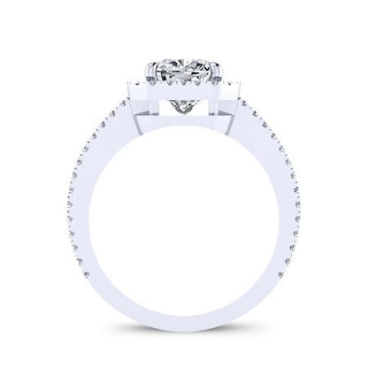 A Split Shank Makes This Halo Engagement Ring Amazing. The Cut Corners Of The Halo Adds More Glamour To The Overall Look Of The Precious Ring. Perfect For Proposing Or Even For Gifting. The Shiny Side Stones Completes The Package.