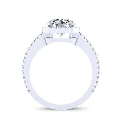 A Split Shank Makes This Halo Engagement Ring Amazing. The Cut Corners Of The Halo Adds More Glamour To The Overall Look Of The Precious Ring. Perfect For Proposing Or Even For Gifting. The Shiny Side Stones Completes The Package.