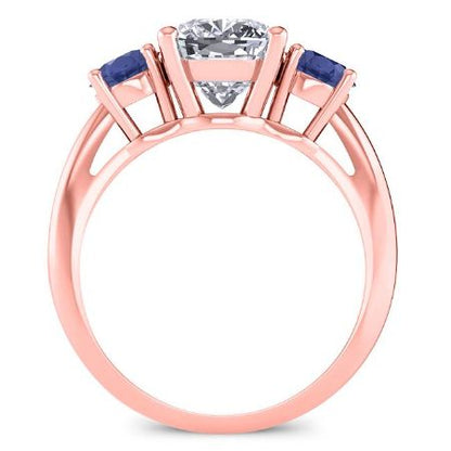 What A Lovely Three Stone Ring In Prong Type Setting. This Ring Has Sapphire Accent Stones On Each Side Of The Center Stone. Such A Brilliant And Elegant Design