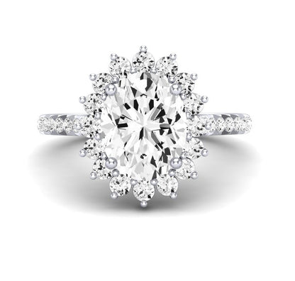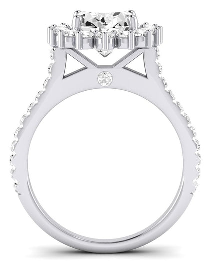 This exquisite engagement ring embodies modern elegance with a captivating halo design. A brilliant center gem is encircled by a halo of shimmering round side stones, creating a dazzling display of light and brilliance.