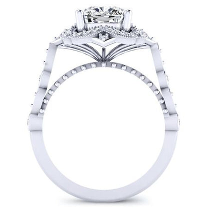 This Is A Vintage Ring Design With Floral Top Halo. This Ring Is Filled With Accent Stones That Triggers Shine And Brilliance. The Shank Is Polished Finish With Round Accent Stones