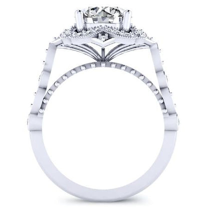 This Is A Vintage Ring Design With Floral Top Halo. This Ring Is Filled With Accent Stones That Triggers Shine And Brilliance. The Shank Is Polished Finish With Round Accent Stones