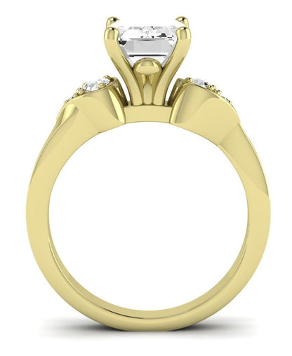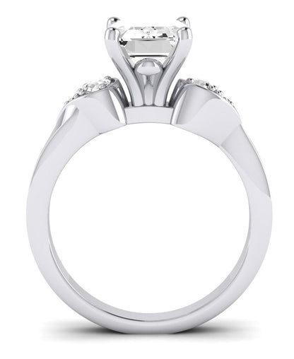 This Engagement Ring Features A Lovely Leaf Style On Each Side Of The Center Stone. The Leaf Shape Design Has Two Round Accent Stones That Are Perfectly Delivering Shine And Style To The Overall Design Of The Ring. Try It Now.