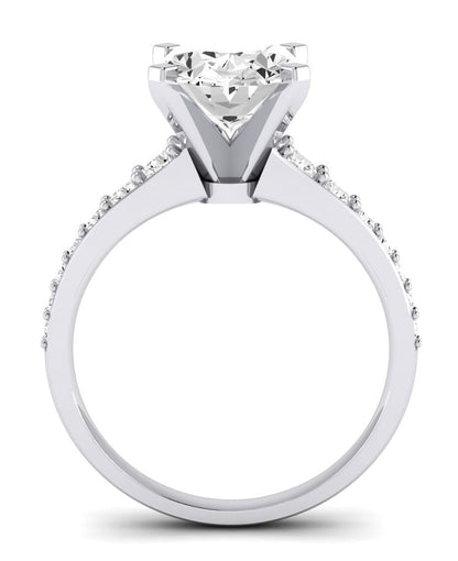 This exquisite engagement ring is a timeless masterpiece that embodies elegance and sophistication. The classic accented design features a stunning center stone, gracefully embraced by prongs, and complemented by a graduated row of dazzling side stones that cascade along the band, creating a mesmerizing display of sparkle.