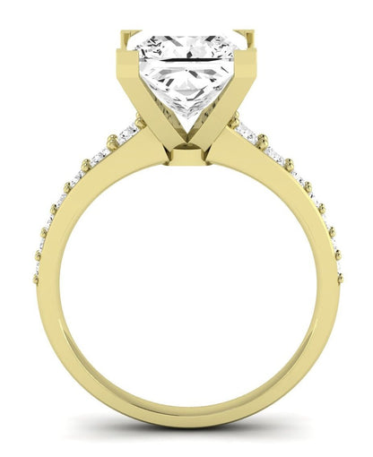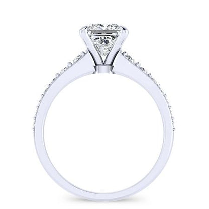 This exquisite engagement ring is a timeless masterpiece that embodies elegance and sophistication. The classic accented design features a stunning center stone, gracefully embraced by prongs, and complemented by a graduated row of dazzling side stones that cascade along the band, creating a mesmerizing display of sparkle.