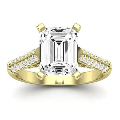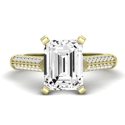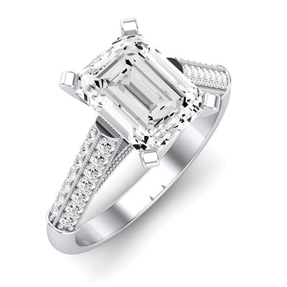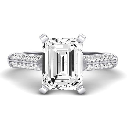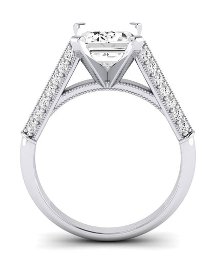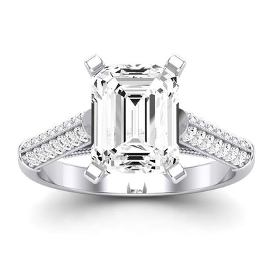 Two Rows Of Brilliant Round Side Stone Accents On Each Side Of The Shank Can Make You Fall In Love With This Engagement Ring. The Lovely Cathedral Style Engagement Ring Is Yours To Wear.