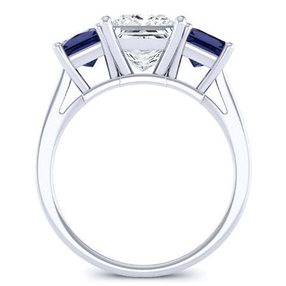 A Favorite Of Many. This Ring Is A Three Stone Design Ring With 2 Sapphire Stones Princess Shape On Each Side Of The Center Stone. It Can Be Set With Your Choice Of Center Stone Shape And Metal Type