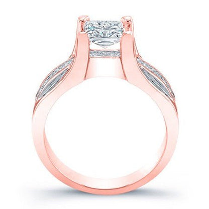 The Whole Center Princess Moissanite Is Floating In Front Of Your Eyes Made This Tension Moissanite Ring Truly Unique. It Is A True Celebrity Ring Worthy. Available In Limited Quantity, Get This Princess Cut Engagement Ring When It Is Still Available.