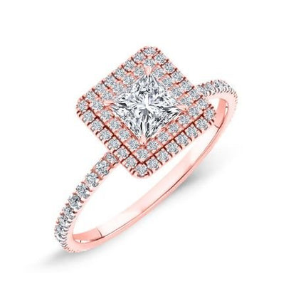 An Exquisite Double Halo Petite Ring. This Design Is Studded With Round Accent Stones And A Variety Of 2 Tone Metal Depending On Your Selection. Choose Your Center Stone Shape And Weight And Order This Amazing Ring Today
