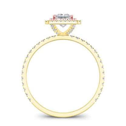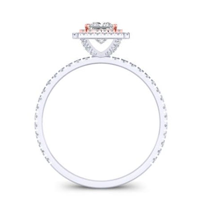 An Exquisite Double Halo Petite Ring. This Design Is Studded With Round Accent Stones And A Variety Of 2 Tone Metal Depending On Your Selection. Choose Your Center Stone Shape And Weight And Order This Amazing Ring Today