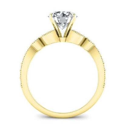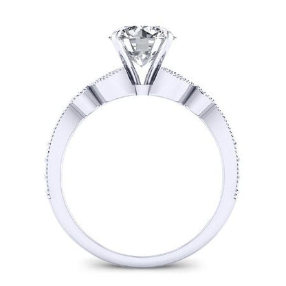 This stunning engagement ring embodies timeless elegance with a touch of nature-inspired artistry. The classic accented design beautifully showcases your chosen gemstone, while the unique details elevate it to a truly exceptional piece.