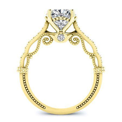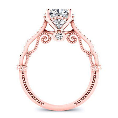 Capture the romance of a bygone era with this breathtaking vintage-inspired engagement ring. This exquisite piece blends classic design elements with unique details, creating a timeless symbol of love and commitment. The intricate craftsmanship and delicate accents make this ring a true heirloom in the making.