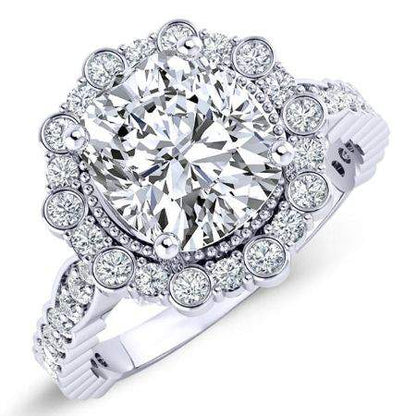 When It Comes Halo Rings, This Is One Of The Best Choice For You To Propose With. This Is A Lovely Halo Ring Design With Small Accent Stones To Add Shine To The Center Stone. Choose Your Center Stone Shape And Size And Build Your Dream Halo Ring Today. Customizable To 14k, 18k Gold Or Platinum. Such A Delight!
